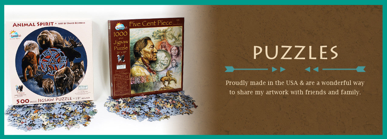 These quality jigsaw puzzles featuring the art of David Behrens make the perfect gift. Not only do they bear the vivid imagery found in David's art but they are also made in the U.S.A. and are printed with eco friendly, soy based ink on recycled board.